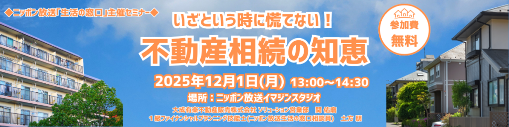 【2025年12月1日(月)開催】終活セミナー「いざという時に慌てない! 不動産相続の知恵」
