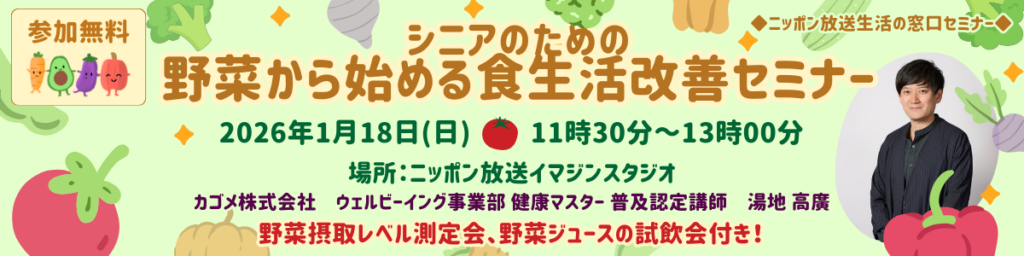 【2026年1月18日(日)開催】健康セミナー「シニアのための野菜から始める食生活改善セミナー」