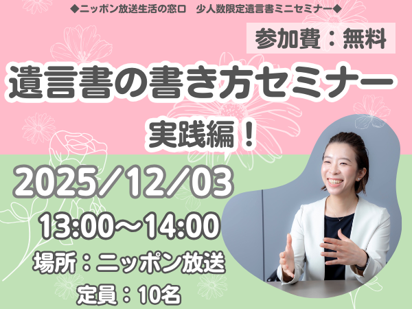 【2025年12月3日開催】少人数限定!遺言書ミニセミナー「遺言書の書き方セミナー 実践編!」 NEW